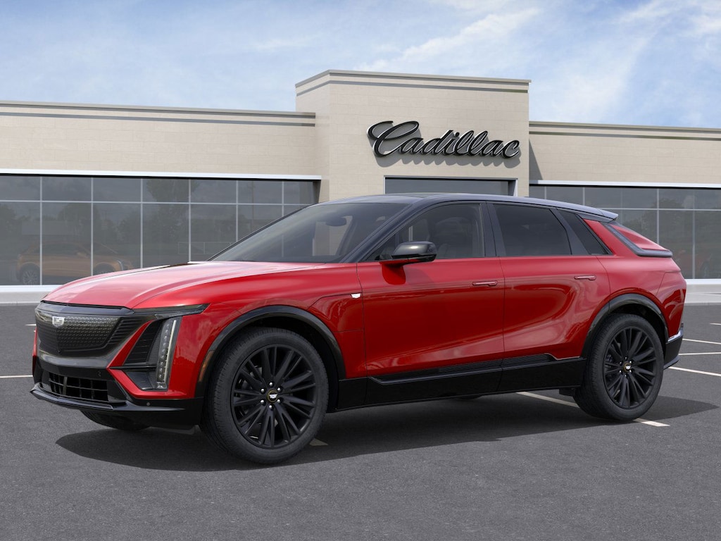 Radiant Red 2025 Cadillac LYRIQ Sport 1-Speed Automatic Electric Drive Unit 19 Speakers, 4-Wheel Disc Brakes, 8-Way Power Driver Seat Adjuster, 8-Way Power Front Passenger Seat Adjuster, ABS brakes, Air Conditioning, AKG Studio 19-Speaker System, Alloy wheels, AM/FM radio: SiriusXM with 360L, Apple CarPlay/Android Auto, Auto High-beam Headlights, Auto-dimming door mirrors, Automatic temperature control, Black Roof, Brake assist, Bronze Accent Package (LPO), Bronze Wheel Center Caps (LPO), Bumpers: body-color, Compass, Decal Package (LPO), Delay-off headlights, Driver & Front Passenger Heated Seats, Driver & Front Passenger Ventilated Seats, Driver 4-Way Power Lumbar Seat Adjustment, Driver door bin, Driver Seat Power Lumbar Massage, Driver vanity mirror, Dual front impact airbags, Dual front side impact airbags, Dual Motor AWD, Electronic Stability Control, Emergency communication system: OnStar and Cadillac connected services capable, Four wheel independent suspension, Front anti-roll bar, Front Bucket Seats, Front Center Armrest, Front dual zone A/C, Front License Plate Bracket, Front Passenger 4-Way Power Lumbar Seat Adjustment, Front Passenger Seat Memory, Front Passenger Seat Power Lumbar Massage, Front reading lights, Fully automatic headlights, Garage door transmitter, Google Built-In, Heated door mirrors, Heated front seats, Heated steering wheel, Hitch Guidance w/Trailering Assist Guideline, Hitch View, Illuminated entry, Inteluxe Seat Trim, Knee airbag, Leather steering wheel, Low tire pressure warning, Memory seat, Navigation system: Google Automotive Services Capable, Occupant sensing airbag, Outside temperature display, Overhead airbag, Overhead console, Panic alarm, Passenger door bin, Passenger vanity mirror, Power door mirrors, Power driver seat, Power Dual Panel Panoramic Sliding Sunroof, Power Liftgate, Power passenger seat, Power steering, Power windows, Preferred Equipment Group 1SJ, Premium Suspension, Radio data system, Radio: Infotainment Experience, Rain sensing wipers, Rear anti-roll bar, Rear reading lights, Rear seat center armrest, Rear window defroster, Remote keyless entry, Security system, SiriusXM w/360L Trial Subscription, Speed control, Speed-sensing steering, Split folding rear seat, Spoiler, Steering wheel memory, Steering wheel mounted audio controls, Telescoping steering wheel, Tilt steering wheel, Traction control, Trip computer, Turn signal indicator mirrors, Variably intermittent wipers, Ventilated front seats, Wheels: 20 Dynamic 12-Spoke Alloy, Wheels: 22 Black (LPO), Wheels: 22 Transit, Wireless Apple CarPlay/Wireless Android Auto.