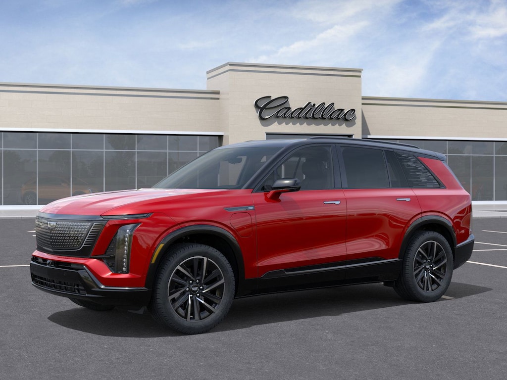 Radiant Red 2026 Cadillac VISTIQ AWD 1-Speed Automatic Electric ZEV 615hp 3rd row seats: bench, 4-Wheel Disc Brakes, ABS brakes, Adaptive suspension, Air Conditioning, AKG Studio 23-Speaker System w/Dolby Atmos, Alloy wheels, AM/FM radio: SiriusXM with 360L, Auto High-beam Headlights, Auto-dimming door mirrors, Automatic temperature control, Brake assist, Bumpers: body-color, Compass, Delay-off headlights, Driver 4-Way Power Lumbar Seat Adjuster, Driver 8-Way Power Seat Adjuster, Driver door bin, Driver Power Massage Seat, Driver vanity mirror, Dual front impact airbags, Dual front side impact airbags, Electronic Stability Control, Emergency communication system: OnStar Services capable, Four wheel independent suspension, Front anti-roll bar, Front Bucket Seats, Front Center Armrest, Front dual zone A/C, Front Passenger 4-Way Power Lumbar Seat Adjuster, Front Passenger 8-Way Power Seat Adjuster, Front Passenger Power Massage Seat, Front reading lights, Fully automatic headlights, Garage door transmitter, Heated door mirrors, Heated Front Driver & Passenger Seats, Heated front seats, Heated rear seats, Heated steering wheel, Illuminated entry, Inteluxe Seat Trim, Knee airbag, Low tire pressure warning, Memory seat, Navigation system: Google Automotive Services Capable, Occupant sensing airbag, Outside temperature display, Overhead airbag, Overhead console, Panic alarm, Passenger door bin, Passenger vanity mirror, Power door mirrors, Power driver seat, Power Liftgate, Power moonroof: Panoramic, Power passenger seat, Power steering, Power windows, Radio data system, Radio: Curved 33 Diagonal Advanced Color LED Display, Rain sensing wipers, Rear air conditioning, Rear anti-roll bar, Rear dual zone A/C, Rear reading lights, Rear seat center armrest, Rear window defroster, Rear window wiper, Remote keyless entry, Security system, SiriusXM w/360L Trial Subscription, Speed control, Speed-sensing steering, Split folding rear seat, Spoiler, Sport Suspension, Steering wheel memory, Steering wheel mounted audio controls, Telescoping steering wheel, Tilt steering wheel, Traction control, Trip computer, Turn signal indicator mirrors, Variably intermittent wipers, Ventilated Front Driver & Passenger Seats, Ventilated front seats, Wheels: 21 Diamond Cut w/Medium Android Finish.